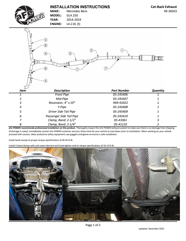 MACH Force-Xp 2-1/2 IN to 2-1/4 IN 304 Stainless Steel Cat-Back Exhaust System Mercedes Benz GLA250 14-19 L4-2.0L (t)