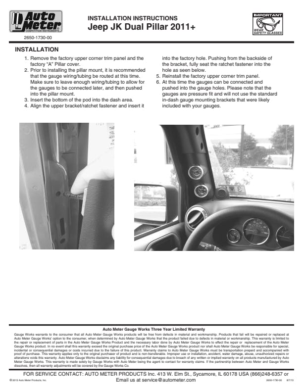 - For Use w/2-1/16 in. AutoMeter Gauges