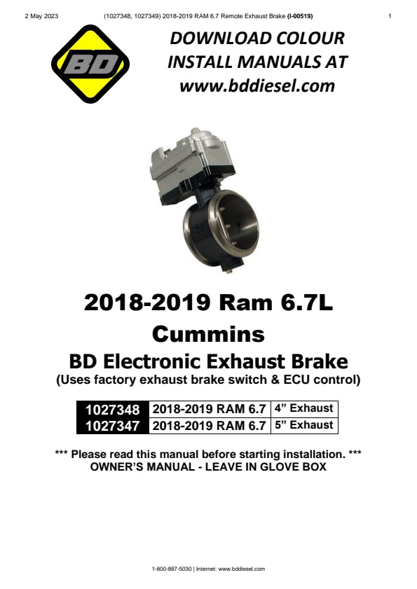 BD Electronic Exhaust Brake 4.0-inch RAM 2500/3500 6.7L Cummins 2018-2023
