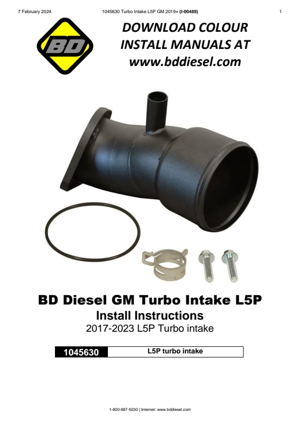 The BD L5P intake horn replaces the plastic factory turbo inlet pipe. The pipe is manufactured from 3-1/2" 409 series stainless tubing and features black powder coating for extra protection. The BD intake horn is a drop-in an upgrade component that compliments the L5P Screamer Turbo and other aftermarket upgraded turbos for the L5P! Not recommend for use on OE turbochargers unless custom tuning is accompanied.