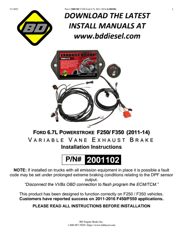 BD 6.7L Powerstroke Exhaust Brake Ford 2011-2014 F250/F350