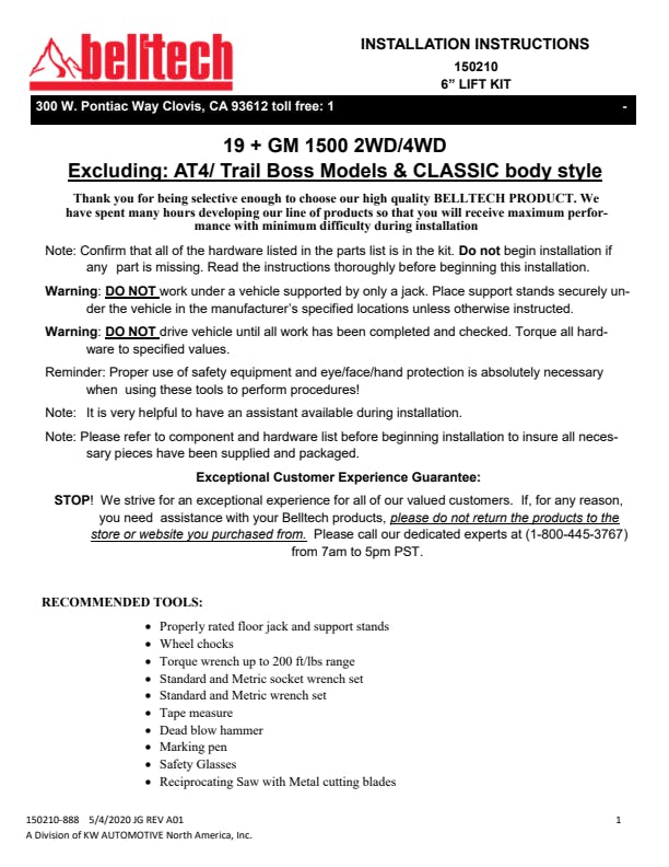 This Belltech Lift Kit will?NOT?add the stated additional lift to?Chevy Trail Boss / GMC Elevation?Models with the 2" Factory Lift.