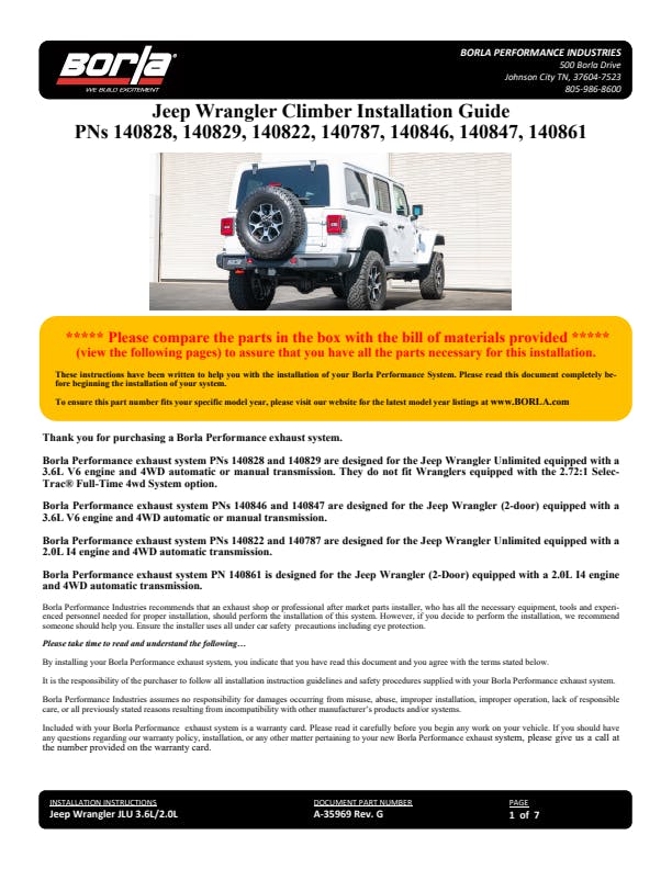 2018-2023 Jeep Wrangler JL Cat-Back Exhaust System Touring Climber Part # 140846 |