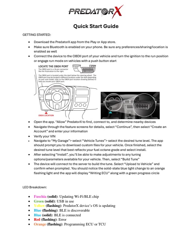 PredatorX is the latest in tuning technology, and our latest release adds coverage for popular 2007-2014 Dodge and Ram applications! Using your smartphone, you can interface with PredatorX through our mobile app and handle all of your tuning needs, right from your pocket! This represent a whole new way to tune your car or truck! iOS and Android apps are available! Pull your phone out of your pocket, launch the PredatorX app, and you're tuning! The OBDII dongle can stay connected to the vehicle full time, so you're always seconds away from being able to make tuning changes. PredatorX is preloaded with power adding tunes for multiple octane levels, as well as transmission tunes for applications where they are needed. For those seeking more than the provided tunes offer, there are a plethora of end user based parameters that can be adjusted. Speed limiter, tire size, rev limiters, idle speed and so much more can be adjusted through the PredatorX.The PredatorX app also alows for real-time data monitoring and logging, for keeping an eye on whats happening under your hood. You can also read and clear Diagnostic Trouble Codes (DTCs) from the app!Have a second vehicle you'd like to tune in your driveway? Connect your PredatorX dongle and purchase an additional vehicle license to tune multiple vehicles, with the same PredatorX! The app will always know which vehicle you are connected to, making it easy to tune and manage multiple vehicles from a single device.With coverage for popular GM and Dodge/Ram vehicles, PredatorX is the ultimate mobile tuning solution for whatever is in your driveway!