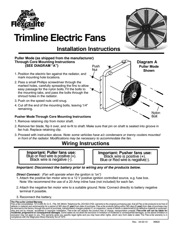 Slim Design; Fully Reversible; Straight Blade; Economical; Frees Up Wasted Horsepower; Increases Gas Mileage; Provides Additional Cooling; Greater Control/Fan Operation| Attributes | |