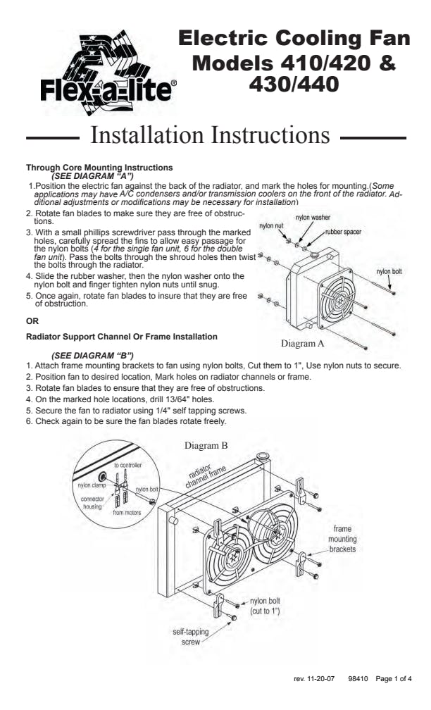 Fan Electric 12 1/8 dual shrouded pusher Lo-Profile S-blade with variable speed control.