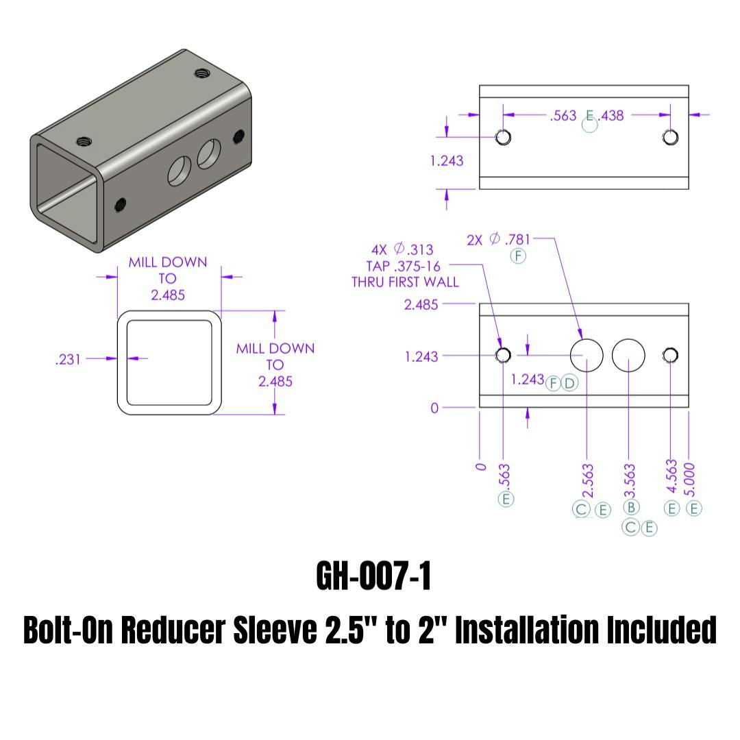 Bolt-On Reducer Sleeve 2.5" to 2" Installation Included