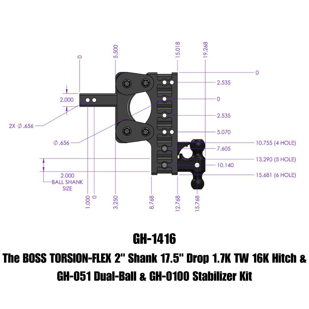 The BOSS TORSION-FLEX 2" Shank 17.5" Drop 1.7K TW 16K Hitch & GH-051 Dual-Ball & GH-0100 Stabilizer Kit