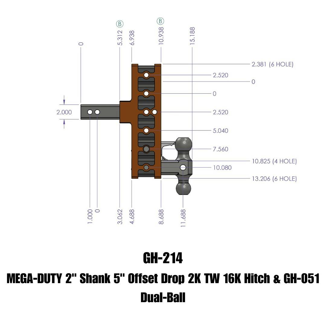 MEGA-DUTY 2" Offset Shank 2.5 Rise, 5" Drop 2K TW 16K Hitch & GH-051 Dual-Ball