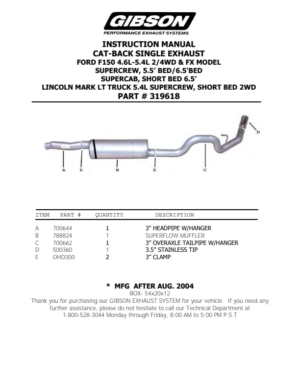 Gibson Single Side Exhaust is perfect for improved acceleration, maximum hill climbing, towing and passing power. This is our best performing Exhaust System. Exits behind the rear tire. Quieter in the cab than any other Performance Exhaust. Dyno test results show it makes maximum torque and horsepower at low-end (1800 to 3000 RPM). Horsepower gains average 10-15 and 15-20lb-ft of increase torque. Hassle free, bolt-on installation with professional looking results. No welding required. Backed by a Lifetime Limited Warranty.