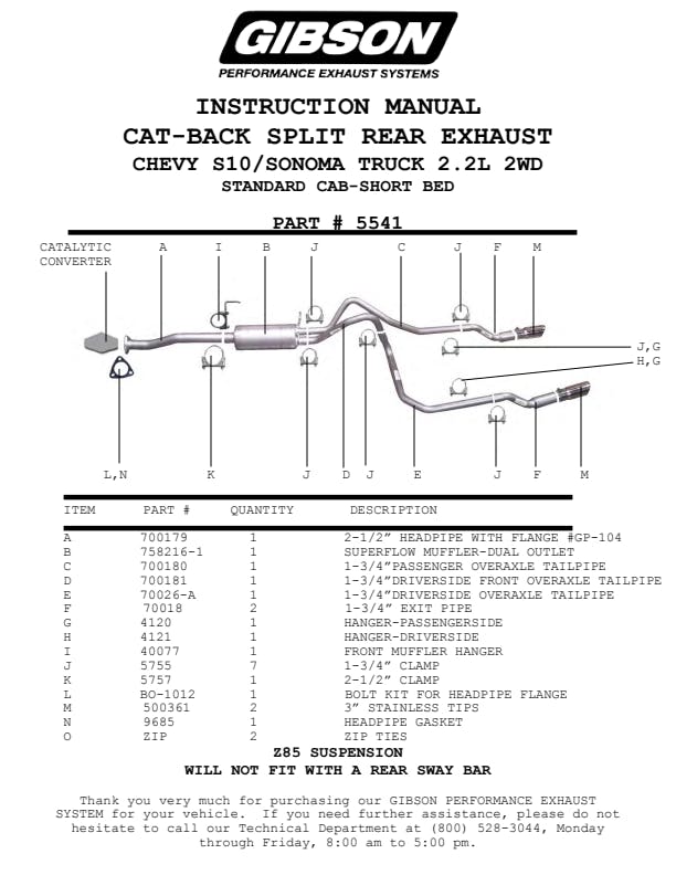 For the enthusiast who wants an awesome look and aggressive throaty sound this Dual Split Cat back exhaust is for you. Gibson Exhaust Systems decrease backpressure and produce more torque and increased horsepower. Typical gains average of 15-20 horsepower. Stainless dual Tip exit straight out the back. Works with most bumpers, roll pans and trailer hitches. Exhaust sound is louder under towing conditions. Hassle Free bolt- on installation. No welding required. Backed by a Lifetime Limited Warranty.