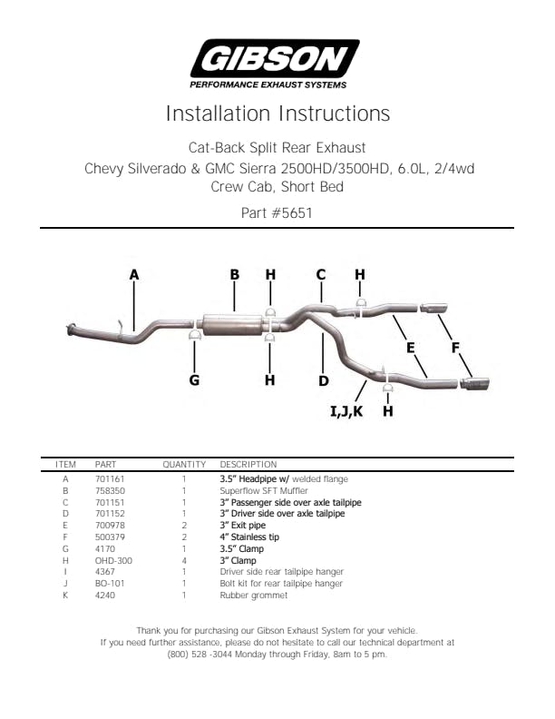 For the enthusiast who wants an awesome look and aggressive throaty sound this Dual Split Cat back exhaust is for you. Gibson Exhaust Systems decrease backpressure and produce more torque and increased horsepower. Typical gains average of 15-20 horsepower. Stainless Tip exit straight out the back. Works with most bumpers, roll pans and trailer hitches. Exhaust sound is louder under towing conditions. Hassle Free bolt- on installation. No welding required. Backed by a Lifetime Limited Warranty.
