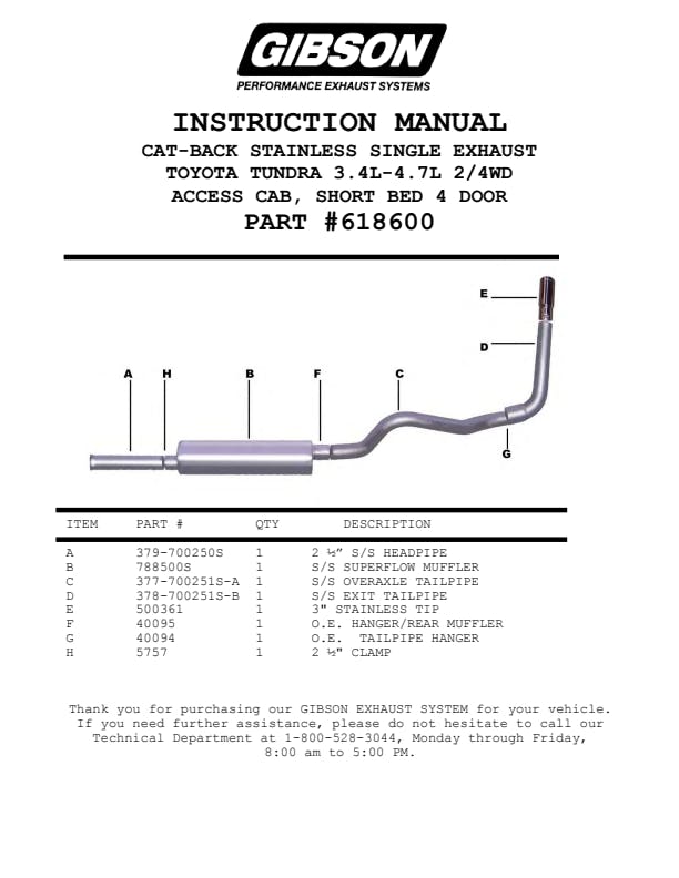 Gibson Single Side Exhaust is perfect for improved acceleration, maximum hill climbing, towing and passing power. This is our best performing Exhaust System. Exits behind the rear tire. Quieter in the cab than any other Performance Exhaust. Dyno test results show it makes maximum torque and horsepower at low-end (1800 to 3000 RPM). Horsepower gains average 10-15 and 15-20lb-ft of increase torque. Hassle free, bolt-on installation with professional looking results. No welding required. Backed by a Lifetime Limited Warranty.