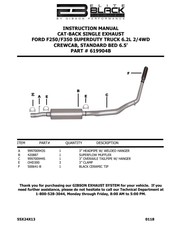 The Black Elite Series product line truly displays Gibson's commitment to dominating performance and style. Each T-304 stainless tip is offered with a premium black finish applied with Gibson's formulated process exclusive only to the Black Elite Series. For increased style and Performance, the series pushes the sound through our proven stainless steel Superflow Muffler giving you a vigorous deep tone. It's manufactured with high quality stainless steel tubing and backed by a limited lifetime warranty. With this perfect combination, Gibson Performance exceeds expectations with the ability to offer quality and style beating their competitors while being Made in the USA. Gibson Performance prides themselves on quality. The process is similar to the other diverse ranges of exhaust kits to maintain top quality with the added exclusive process to make it 'Elite'.