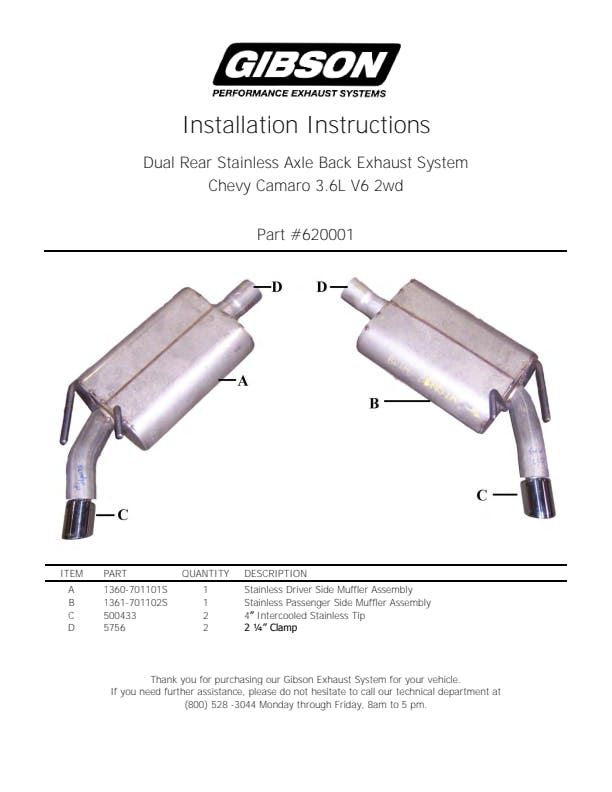 You purchased your muscle car for a reason. Now, Gibson gives you a powerful Exhaust System that screams performance. You can expect a deep powerful exhaust rumble tone with improved acceleration and increased horsepower gains when you put the pedal to the metal! Gibson Muffler actually tunes your exhaust by using resonance chambers, directional louvered tuning ports and angular induction to draw exhaust gases into the muffler and expel it at a higher velocity that delivers optimum power. Hassle free, bolt-on installation with professional looking results. Backed by a Lifetime Limited Warranty.