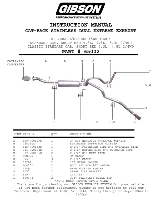 For the extremist who wants to take their truck to the next level, this dual bolt-on Cat back system is for you. This system exists behind the rear tires at an aggressive angle with a powerful exhaust tone. You will gain bold street looks with powerful dyno tuned and tested street performance gains. You can expect to experience gains on average of 15-20 horsepower. Gibson muffler provides a mean performance sound and complemented with polished Stainless Tip. Easy bolt-on installation. No welding required. Backed by a Lifetime Limited Warranty. If you want Extreme, this system is it.