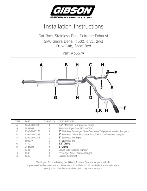 For the extremist who wants to take their truck to the next level, this dual bolt-on Cat back system is for you. This system exists behind the rear tires at an aggressive angle with a powerful exhaust tone. You will gain bold street looks with powerful dyno tuned and tested street performance gains. You can expect to experience gains on average of 15-20 horsepower. Gibson muffler provides a mean performance sound and complemented with polished Stainless Tip. Easy bolt-on installation. No welding required. Backed by a Lifetime Limited Warranty. If you want Extreme, this system is it.