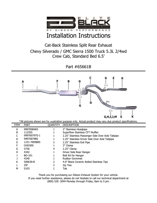 Don't waste a split second! The Black Elite Series displays performance and style by giving you the ultimate choice where there's no need to decide. Take on adventure with the Black Elite Series Split Rear. Each T-304 stainless tip is offered with a premium black ceramic finish applied with Gibson's formulated process exclusive only to the Black Elite Series. For increased style and Performance, the series pushes the sound through our proven stainless steel Superflow Muffler giving you a rich deeper tone. With this perfect combination, Gibson Performance exceeds expectations with the ability to offer quality and style beating their competitors while being made in the USA. The Black Elite Series offers hassle-free bolt on installation and lifetime limited warranty.