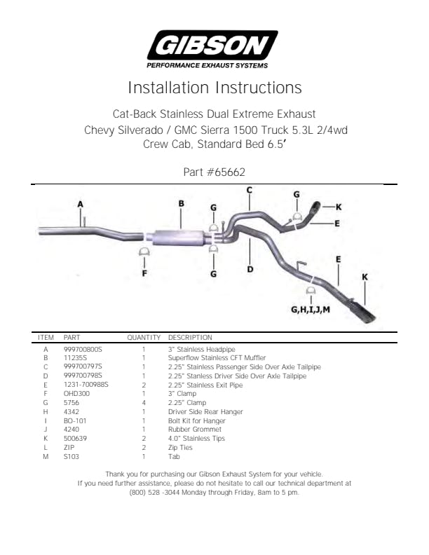 For the extremist who wants to take their truck to the next level, this dual bolt-on Cat back system is for you. This system exists behind the rear tires at an aggressive angle with a powerful exhaust tone. You will gain bold street looks with powerful dyno tuned and tested street performance gains. You can expect to experience gains on average of 15-20 horsepower. Gibson muffler provides a mean performance sound and complemented with polished Stainless Tip. Easy bolt-on installation. No welding required. Backed by a Lifetime Limited Warranty. If you want Extreme, this system is it.