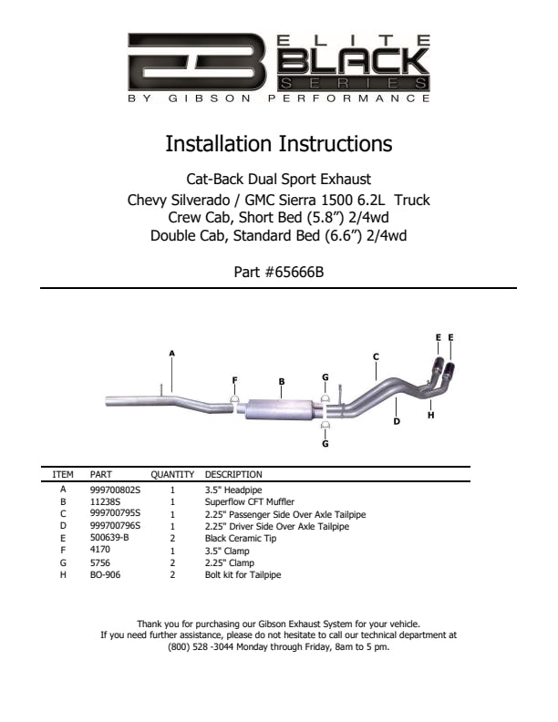 The Black Elite Series product line truly displays Gibson's commitment to dominating performance and style. Each T-304 stainless tip is offered with a premium black finish applied with Gibson's formulated process exclusive only to the Black Elite Series. For increased style and Performance, the series pushes the sound through our proven stainless steel Superflow Muffler giving you a vigorous deep tone. It's manufactured with high quality stainless steel tubing and backed by a limited lifetime warranty. With this perfect combination, Gibson Performance exceeds expectations with the ability to offer quality and style beating their competitors while being Made in the USA. Gibson Performance prides themselves on quality. The process is similar to the other diverse ranges of exhaust kits to maintain top quality with the added exclusive process to make it 'Elite'.