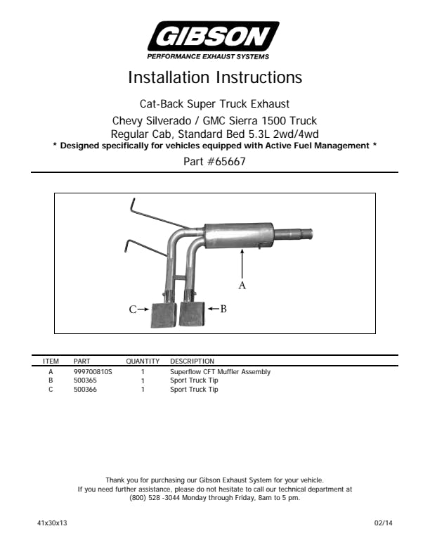 Your truck deserves a super serious Performance Exhaust System. Gibson Super Truck Exhaust System offers a loud deep powerful sound with dual tailpipes that exit in front of the rear tires with Stainless Tip. You can expect a race rumble tone with improved acceleration and increased horsepower gains. Typical dyno tested horsepower gains average 10-15 and 15-20lb-ft of increased torque. Hassle free, bolt-on installation. No welding required. Backed by a Lifetime Limited Warranty. Not recommended for towing. Noise level may exceed 95-decibel standard.