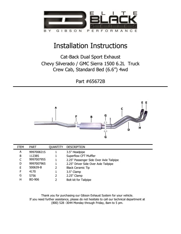 The Black Elite Series product line truly displays Gibson's commitment to dominating performance and style. Each T-304 stainless tip is offered with a premium black finish applied with Gibson's formulated process exclusive only to the Black Elite Series. For increased style and Performance, the series pushes the sound through our proven stainless steel Superflow Muffler giving you a vigorous deep tone. It's manufactured with high quality stainless steel tubing and backed by a limited lifetime warranty. With this perfect combination, Gibson Performance exceeds expectations with the ability to offer quality and style beating their competitors while being Made in the USA. Gibson Performance prides themselves on quality. The process is similar to the other diverse ranges of exhaust kits to maintain top quality with the added exclusive process to make it 'Elite'.
