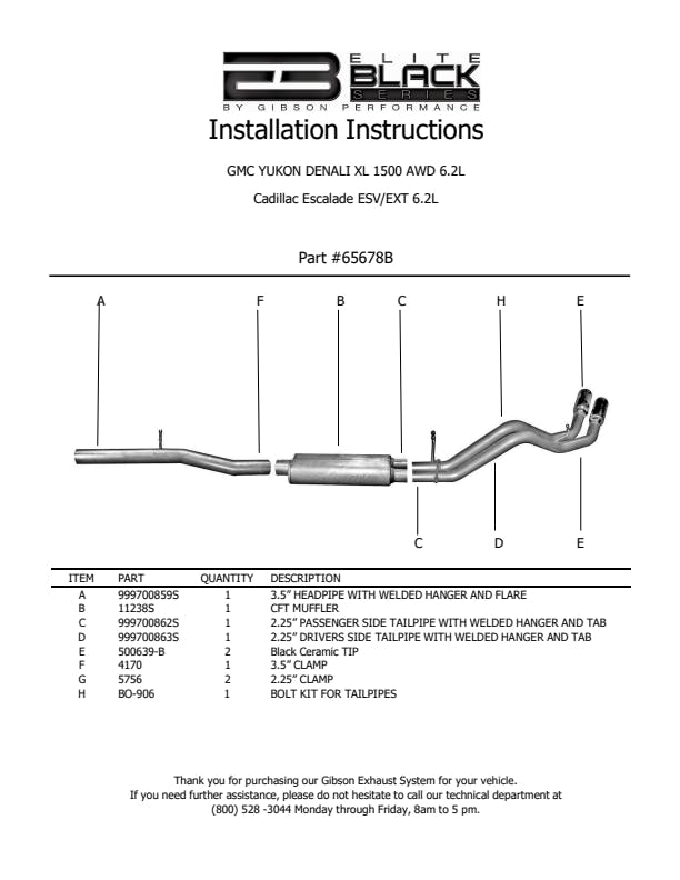The Black Elite Series product line truly displays Gibson's commitment to dominating performance and style. Each T-304 stainless tip is offered with a premium black finish applied with Gibson's formulated process exclusive only to the Black Elite Series. For increased style and Performance, the series pushes the sound through our proven stainless steel Superflow Muffler giving you a vigorous deep tone. It's manufactured with high quality stainless steel tubing and backed by a limited lifetime warranty. With this perfect combination, Gibson Performance exceeds expectations with the ability to offer quality and style beating their competitors while being Made in the USA. Gibson Performance prides themselves on quality. The process is similar to the other diverse ranges of exhaust kits to maintain top quality with the added exclusive process to make it 'Elite'.