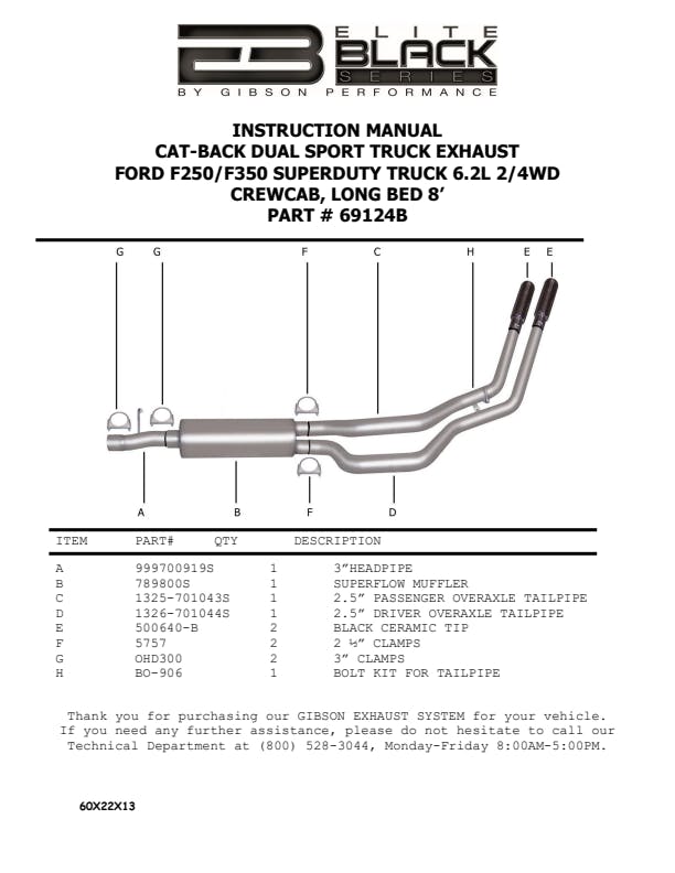 The Black Elite Series product line truly displays Gibson's commitment to dominating performance and style. Each T-304 stainless tip is offered with a premium black finish applied with Gibson's formulated process exclusive only to the Black Elite Series. For increased style and Performance, the series pushes the sound through our proven stainless steel Superflow Muffler giving you a vigorous deep tone. It's manufactured with high quality stainless steel tubing and backed by a limited lifetime warranty. With this perfect combination, Gibson Performance exceeds expectations with the ability to offer quality and style beating their competitors while being Made in the USA. Gibson Performance prides themselves on quality. The process is similar to the other diverse ranges of exhaust kits to maintain top quality with the added exclusive process to make it 'Elite'.
