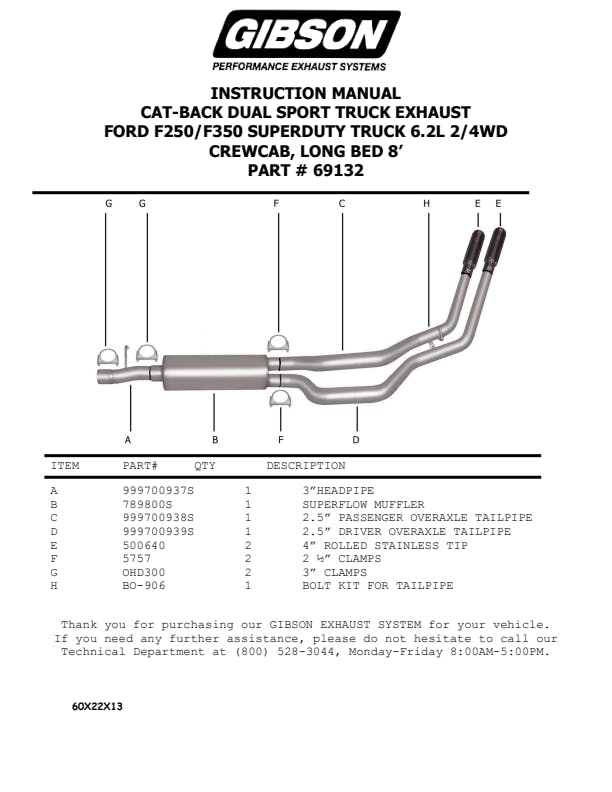 If youre looking to add a little style to your Truck or SUV and want to keep the exhaust from affecting your tow trailer, this Dual Cat back Exhaust System is for you, exiting behind the rear tire for a look that sets your vehicle apart on the street or in the dirt. Hassle free, bolt-on installation with professional looking results. No welding required. Backed by a Lifetime Limited Warranty. Gibson dual sport exhaust offers a powerful authoritative deep exhaust tone with no annoying noise inside the cab. Dyno tested to assure increased horsepower and produce more torque. Average horsepower gains are 10-15 and 15-20lb-ft of increase torque.
