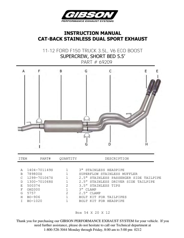 If youre looking to add a little style to your Truck or SUV and want to keep the exhaust from affecting your tow trailer, this Dual Cat back Exhaust System is for you, exiting behind the rear tire for a look that sets your vehicle apart on the street or in the dirt. Hassle free, bolt-on installation with professional looking results. No welding required. Backed by a Lifetime Limited Warranty. Gibson dual sport exhaust offers a powerful authoritative deep exhaust tone with no annoying noise inside the cab. Dyno tested to assure increased horsepower and produce more torque. Average horsepower gains are 10-15 and 15-20lb-ft of increase torque.