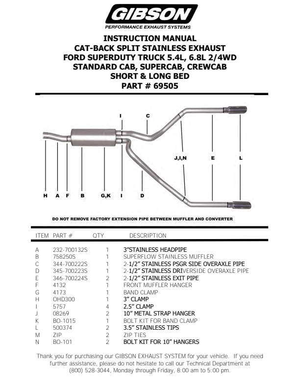 For the enthusiast who wants an awesome look and aggressive throaty sound this Dual Split Cat back exhaust is for you. Gibson Exhaust Systems decrease backpressure and produce more torque and increased horsepower. Typical gains average of 15-20 horsepower. Stainless dual Tip exit straight out the back. Works with most bumpers, roll pans and trailer hitches. Exhaust sound is louder under towing conditions. Hassle Free bolt- on installation. No welding required. Backed by a Lifetime Limited Warranty.