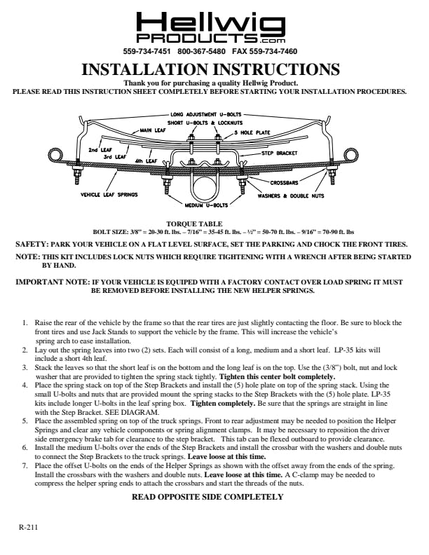 The Mounting Hardware Kit for the Hellwig Load Pro (LP) helper springs include zinc-plated hardware and brackets and is required to be purchased with every LP-25 and LP-35 leaf helper spring kit for proper installation. These kits are vehicle specific to allow the spring kits to mount with no modification.