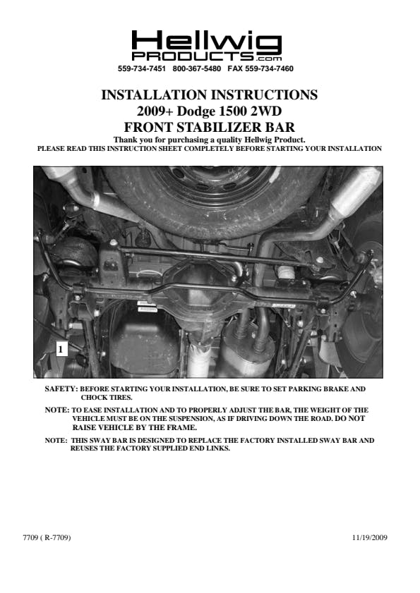 Must order P/N 7961 if vehicle came without factory end links. For your money, the best aftermarket investment you can make! Hellwig Sway Bars are an extremely effective handling upgrade you can make to your vehicle. Hellwig sway bars offer quick bolt on installation that are engineered to perform. An immediate improvement will be felt when you drive through the first corner with a Hellwig sway bar installed. Though most vehicles come equipped with factory installed sway bars, they are often insufficient for today's load and tow demands. Hellwig sway bars feature larger than stock diameters and precision engineered components to optimize handling and reduce body roll.