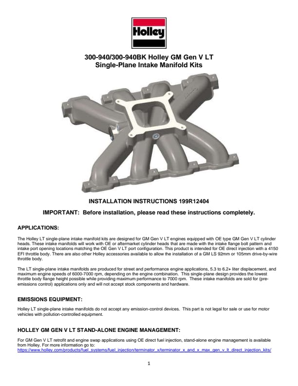 Fits most GM Gen V LT Engines with OE-type LT Cylinder Heads