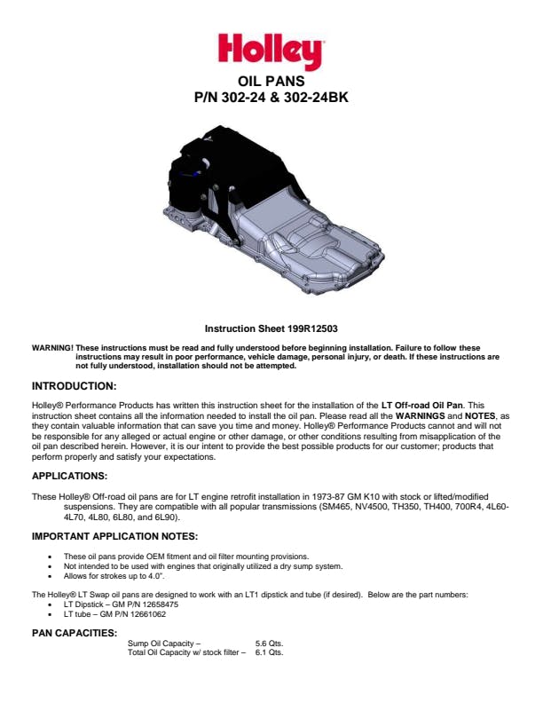 *These pans are not intended to be used with engines that originally utilized a dry sump system.