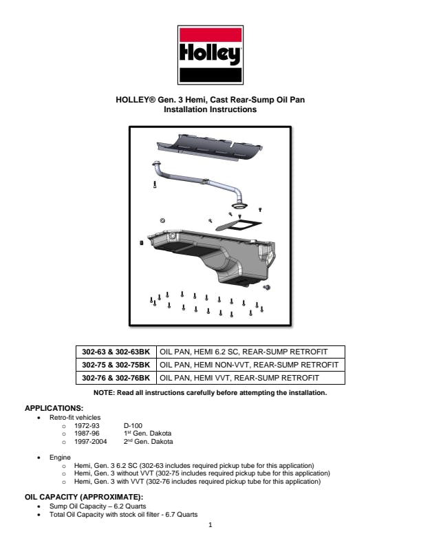 Fits VVT Gen III Hemi Engines - 2009-up 5.7L & 2011-up 6.4L Engines. Rear-Sump Design Fits Most Trucks