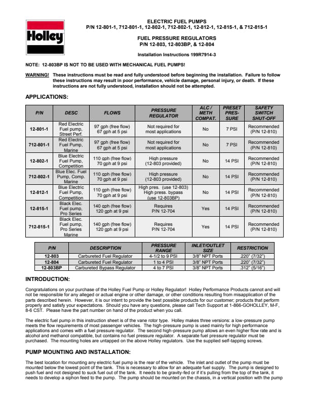 The world famous Red®, Blue® and Black® fuel pumps are the most recognized performance pumps of all times. They have been powering racing legends and street enthusiasts alike since the early 70's. Their time proven rotor/vane design is known to get the job done in an affordable package. Designed with a fume tube for marine use and meets U.S. Coast Guard regulations.