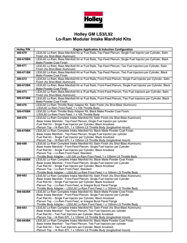 Holley EFI 300-683BK Holley Lo-Ram Manifold Kit Dual Injector- Black - GM LS3/L92