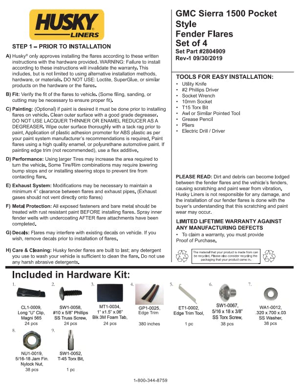 - Pocket Style Fender Flares are covered by Husky Liners Limited Lifetime Warranty, featuring Husky's legendary durability, so they're built to last. Proudly made in the USA with global materials.
