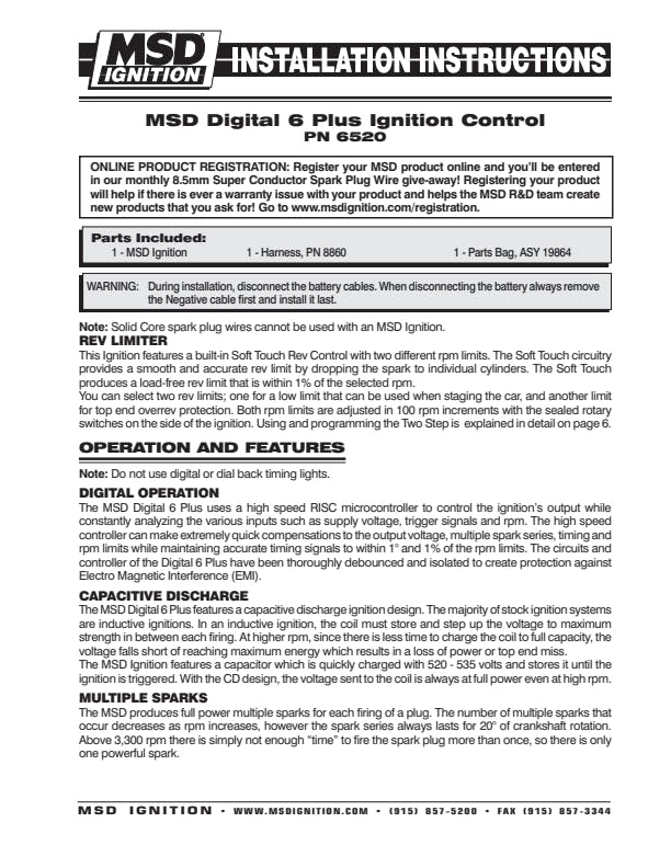 For nitrous-equipped cars, the Digital-6 Plus offers a step retard that will retard the timing when the nitrous is activated. There is also a 2-step rev limiter for holeshot consistency and overrev protection.
