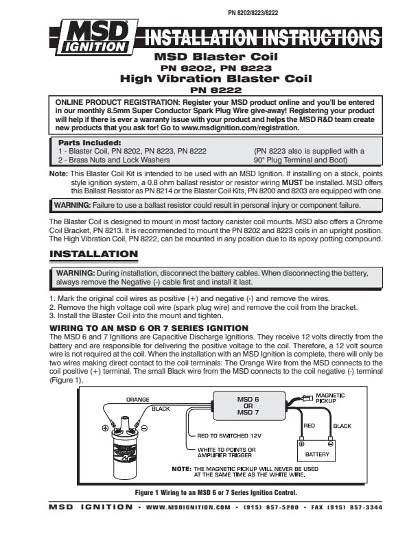 - Improved output coil for electronic ignitions, and MSD Ignitions (ballast resistor required for points)• 100:1 turns ratio and lower primary resistance produce high voltage output