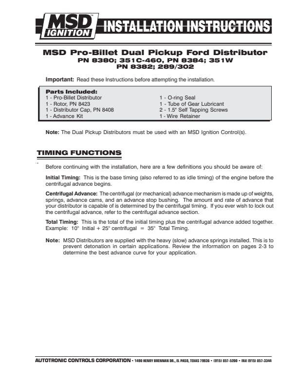 - Easy-to-adjust mechanical advance with supplied springs and stop bushings