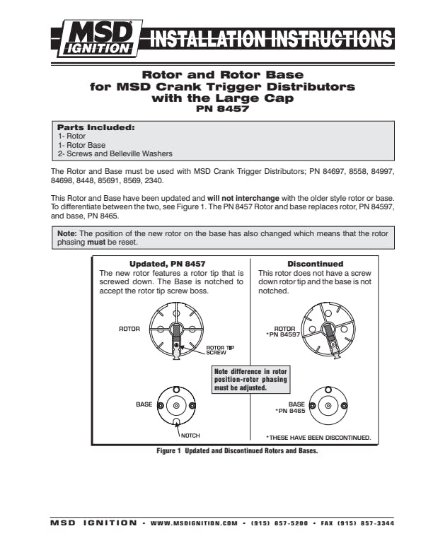 Molded from strong, durable Rynite material these rotors are designed specifically for MSD Crank Trigger Distributors. The rotor tip is machined to help dissipate heat from the rotor tip and secured with a screw for high rpm racing applications.