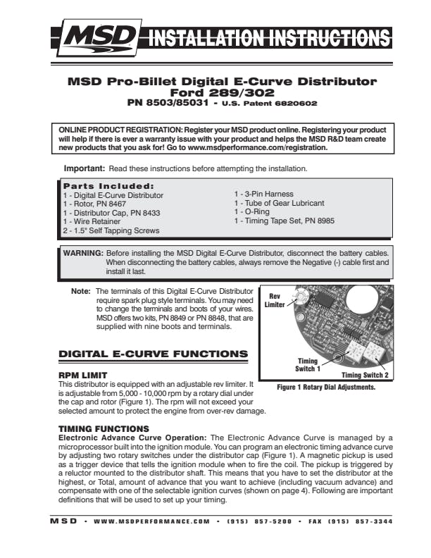 MSD Performance 85031 Distributor, Ford 289/302, E-Curve, Steel Gear