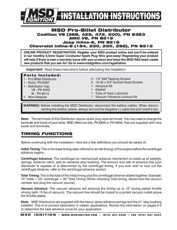 - Easy-to-adjust mechanical advance with supplied springs and stop bushings