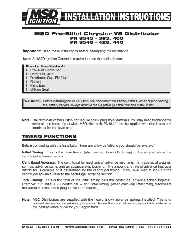 MSD Performance 8546 Chrysler 426,440 Pro-Billet Distributor