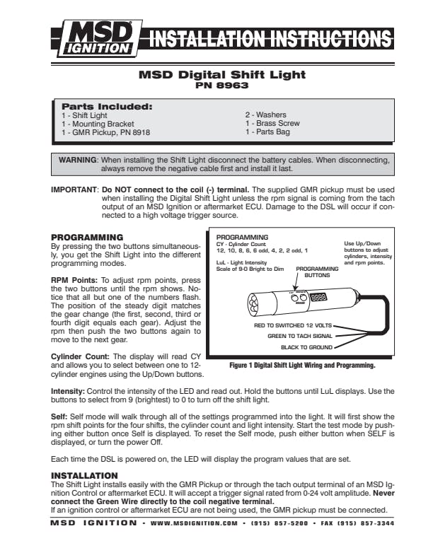 Supplied with a GMR Pickup, PN 8918, to make installation even easier on diesels, points, coil-on-plug and most any other application!