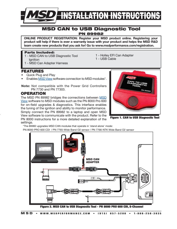 The MSD 89982 bridges the connection between MSDView software and MSD modules such as the Pro 600 CDI (P/N 8000). This interface allows for tuning of MSD ignition modules using MSDView software; Commonly utilized for Pro 600 programming