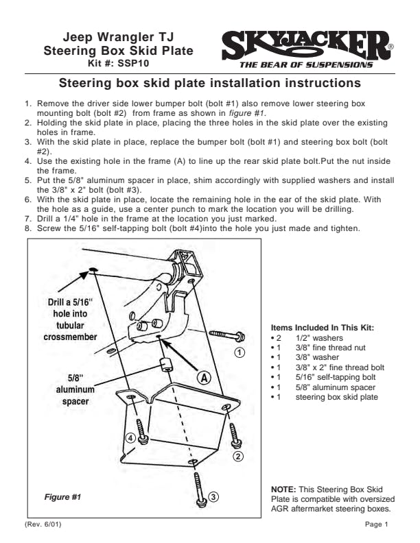 Made of 3/16 in. steel with formed and gusseted corners. Not only do these Skyjacker skid plates increase ground clearance and provide a smooth surface to slide over obstacles with, but they also add that nice appearance under your vehicle.